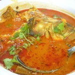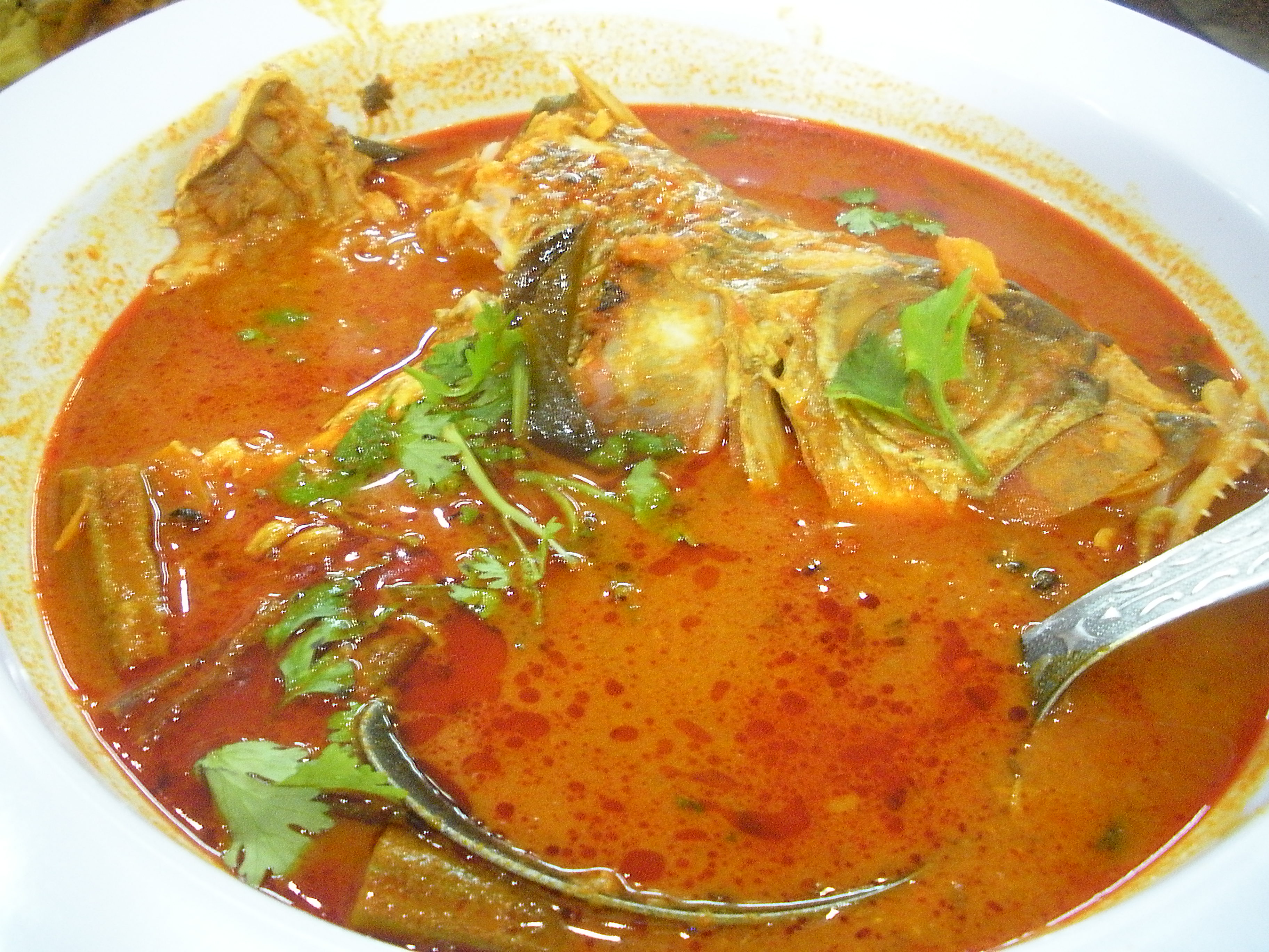 We ordered a small Fish Head Curry to share, and the serving that arrived was huge; I can’t imagine how enormous a large order would be! It was delicious, not too spicy and kind of fun to pull the meat off the bones. After we’d attacked the first side, I flipped it over and the flesh kind of disintegrated into the curry from there, leaving the eye and the skeletal remains looking balefully up at me.