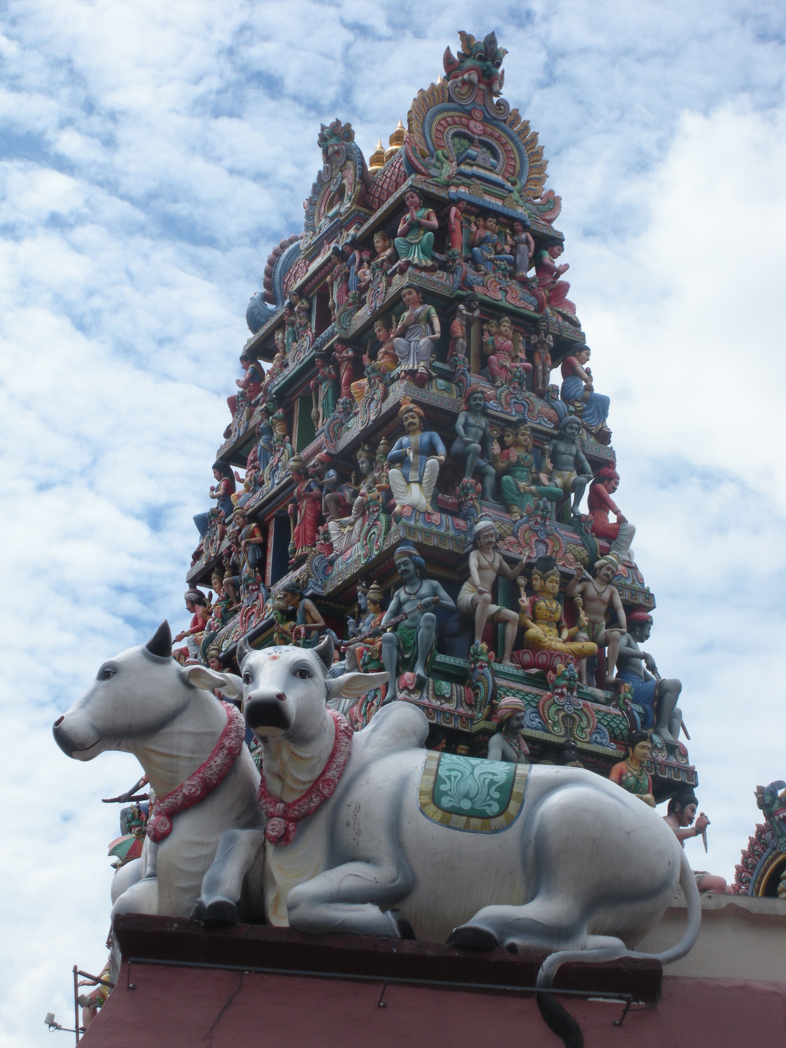 I spent a day in Chinatown, and the first temple I saw was not a Buddhist temple, but the oldest Hindu temple in Singapore. I loved the sacred cows perched on the top of the walls.
