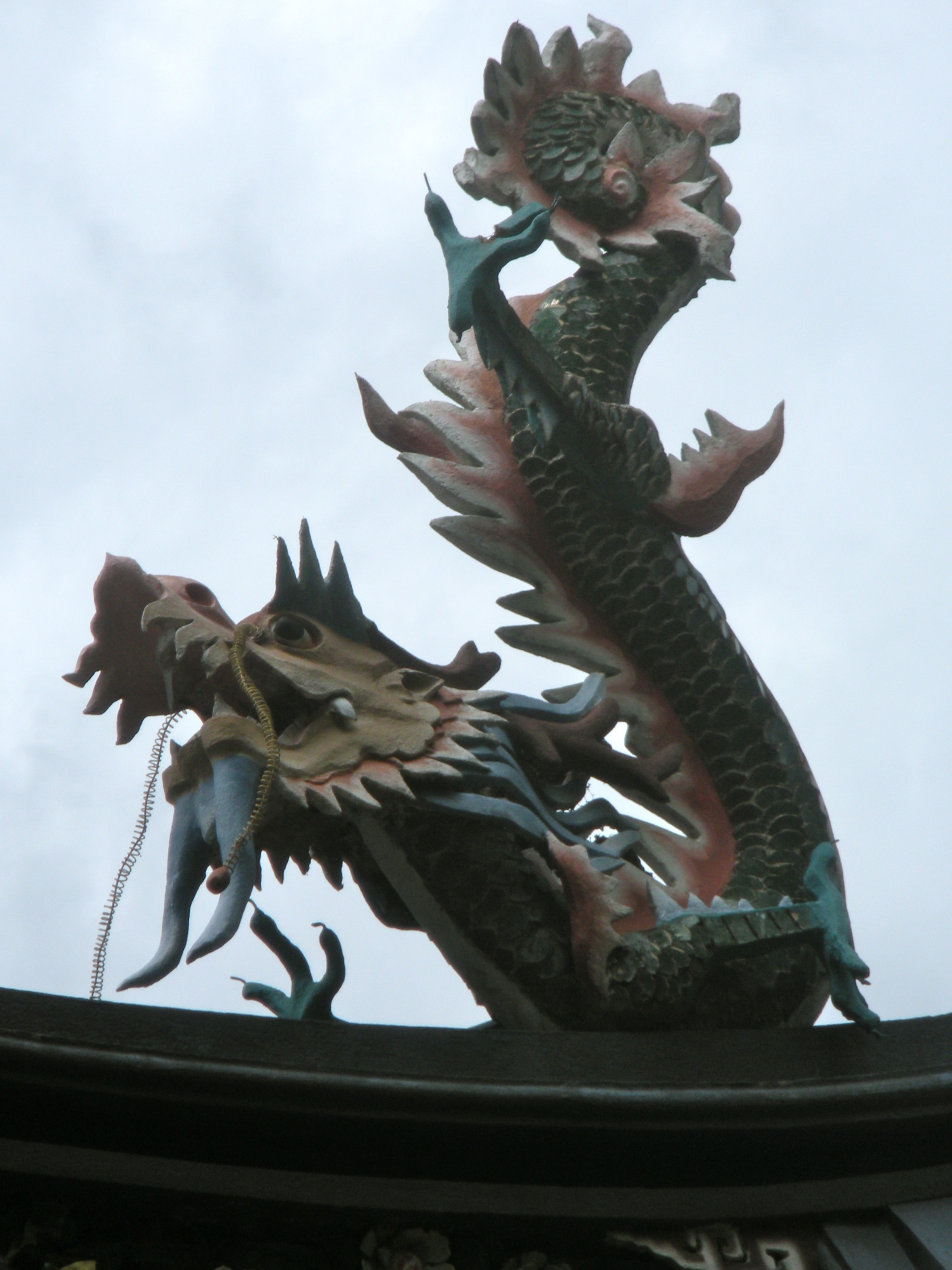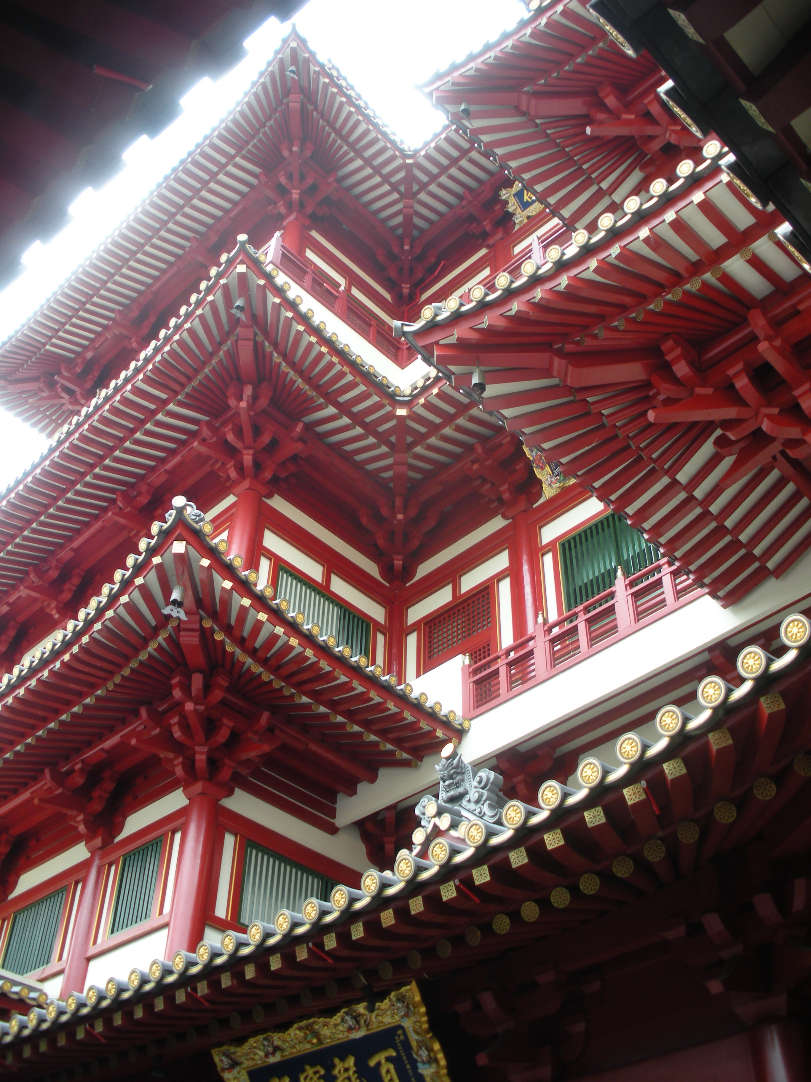 After running the gauntlet of shopkeepers, you emerge at the Buddha Tooth Relic Temple (top picture). This is a striking building, five stories tall and built during the last decade. As it turns out, it is directly across from the Maxwell Road Food Centre, a hawker center we had eaten in on our second day here. We may have been feeling the effects of the jet lag more than we thought, since neither of us had noticed the gigantic temple.
