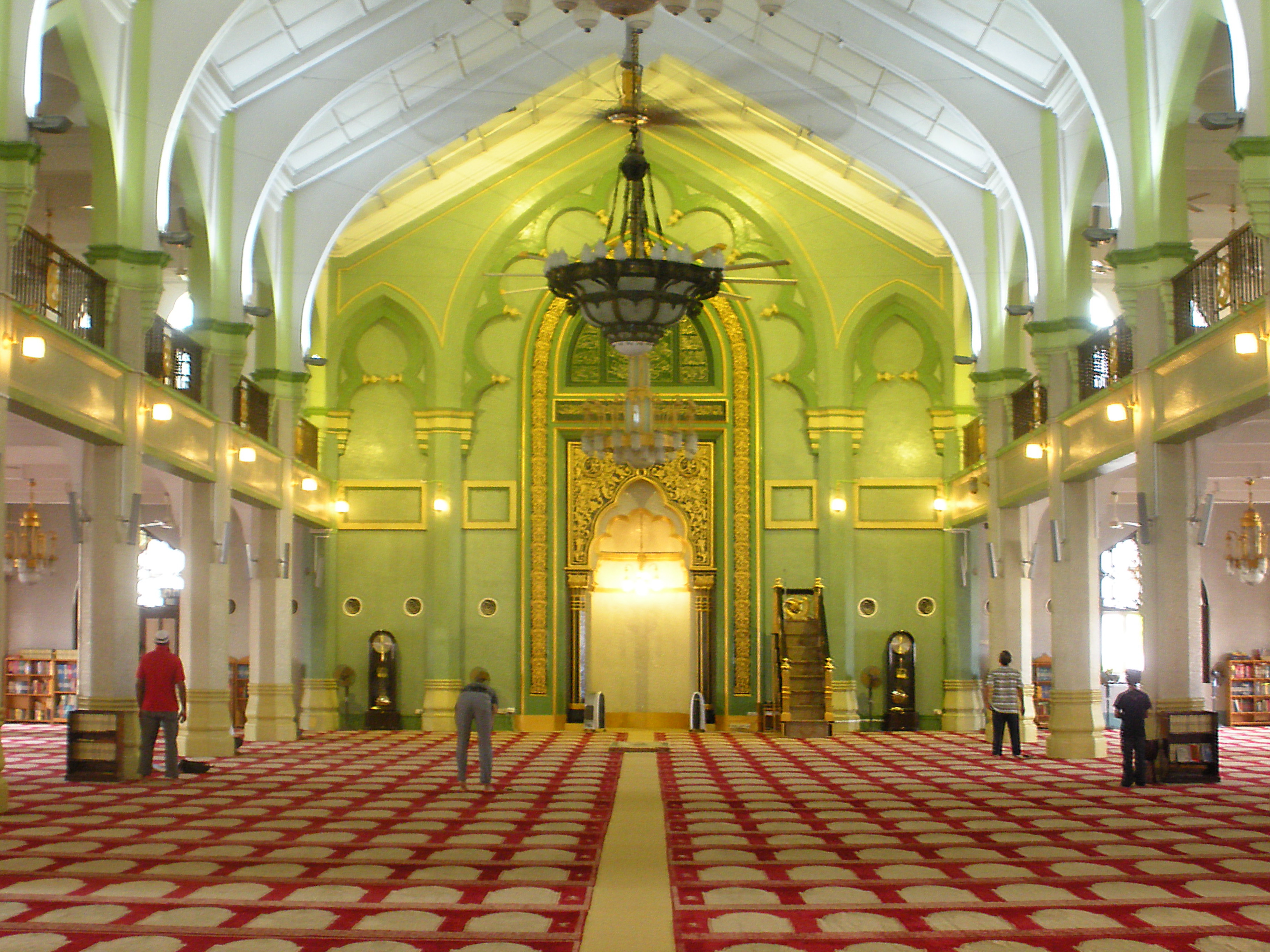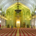 The streets are lined with shophouses that hold cafes, restaurants, souvenir shops, carpet shops, and the odd 7-11. On Arab Street, these shops overflow with brightly colored and patterned fabrics and tailors offering their services. Tempting! From a few blocks away, the minaret and the dome of Masjid Sultan (Malay for Sultan Mosque) peeked over the rooftops. I circled it outside a little tentatively, looking for the entrance and found it at what I had assumed was the back of the building.