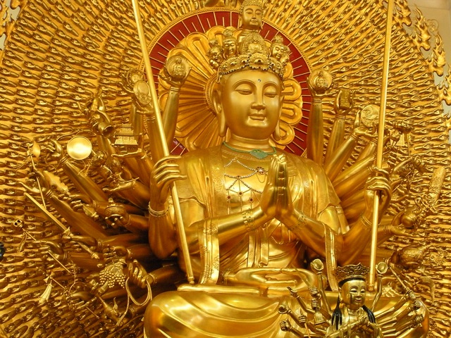 Eventually we came back down, and when we reentered the lower level we almost walked right into a small, smiling woman. She silently handed us incense sticks and demonstrated how to respectfully fan the smoke towards the headless seated Buddha in her alcove. Once we had done that, she tied a braided red string around our right wrists and muttered a blessing (surely, not a curse?). We gave a small donation, and I loved the quiet moment.