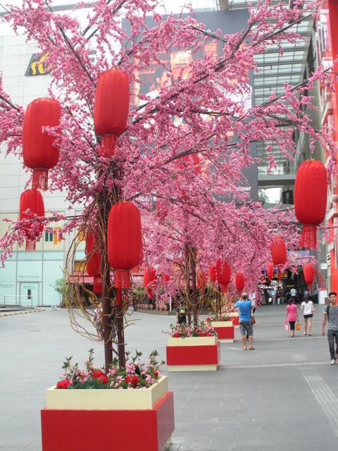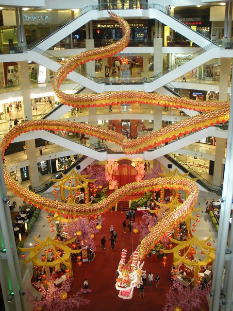Both religious and commericial temples are bedecked with red lanterns, and giant dragons swirl in the middle of the malls. We asked if there would be any big celebrations for the holiday, but most people (even Malay and Indian ones) go home to visit family. Since there are so many people traveling, we’re planning to stick around here. There are dragon and lion dances in Chinatown and in some of the malls, and apparently the God of Prosperity will be wandering around so we’re off to look for him.
