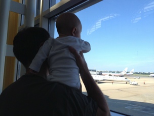 Ren and Grampy watching the planes at the airport